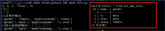 5.没有插入数据没没关系,使用vim 查看CVE-2020-7471.py里内容