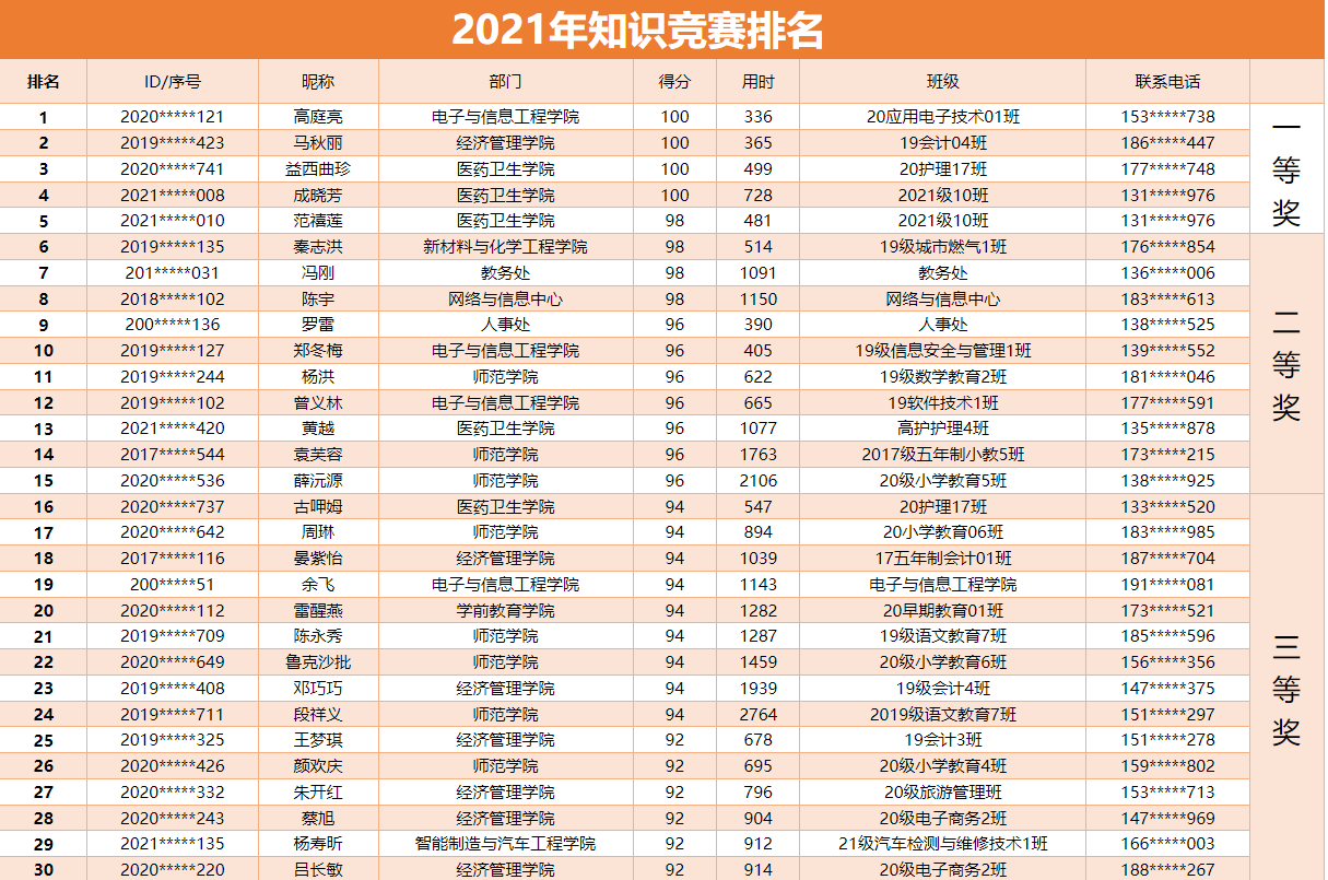 获奖名单如下: